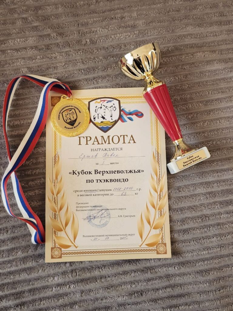 19 и 20 сентября 2025 года в Вышнем Волочке проходило Ежегодное открытое Первенство Вышневолоцкого городского округа "Кубок Верхневолжья по тхэквондо" . В данных соревнования приняли участие 250 сильнейших спортсменов из таких городов как: Великий Новгород, Смоленск, Волгоград, Москва, Черноголовка, Сафоново, Тверь, Калининский район, Торжок, Удомля и Вышний Волочёк. Спортсмен нашей школы , Ершов Павел, ученик 9А класса, занял первое место на этом турнире в весовой категории юноши 2008-2010 г.р. до 63 кг.